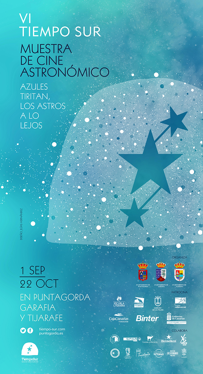Hasta el 22 de octubre de 2016. Los Ayuntamientos de Puntagorda, Garafía y Tijarafe convocan la sexta Muestra de Cine Astronómico, Tiempo Sur. El municipio de Puntagorda será el encargado de acoger...