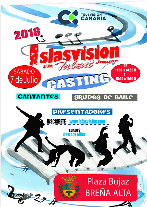 El sábado 7 de julio, la Plaza Bujaz de Breña Alta acogerá el casting Islasvisión Fit Talent Junior School 2018 para las modalidades de canto, grupos de baile, tributos, musical y presentadores....