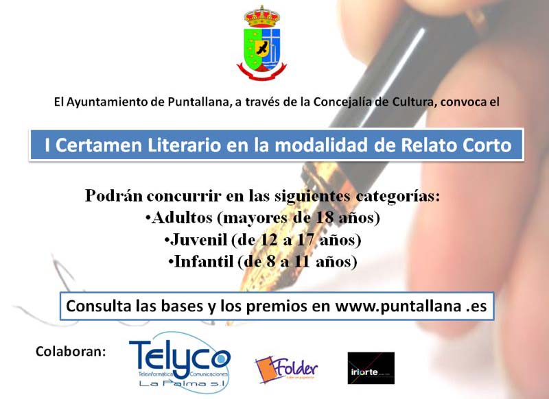 Plazo de presentación de trabajo hasta hasta el 30 de junio de 2014. La concejalía de cultura del Ayuntamiento de Puntallana convoca el I Certamen Literario en la modalidad de Relatos Cortos. 1.- ...