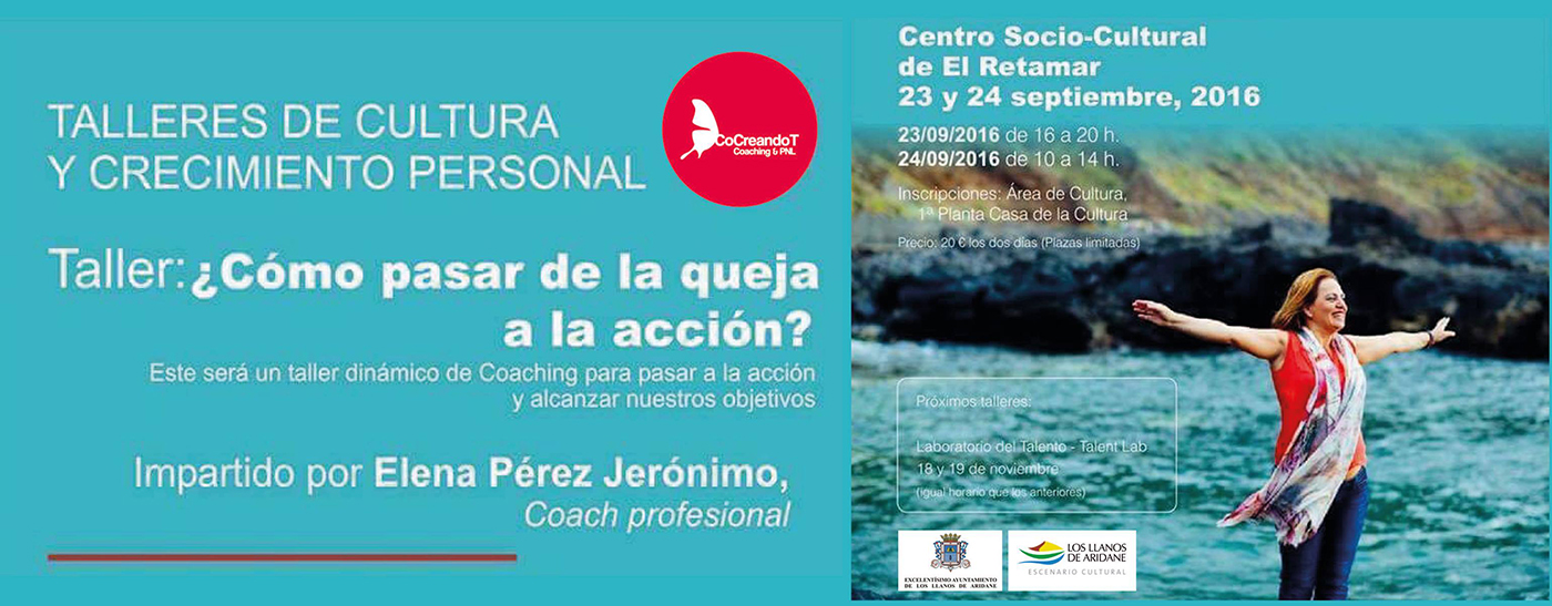 23 y 24 de septiembre de 2016. Centro Sociocultural El Retamar. Los Llanos de Aridane. Taller dinámico de Coaching, para pasar a la acción y conseguir nuestros objetivos. Impartido por la Coach...