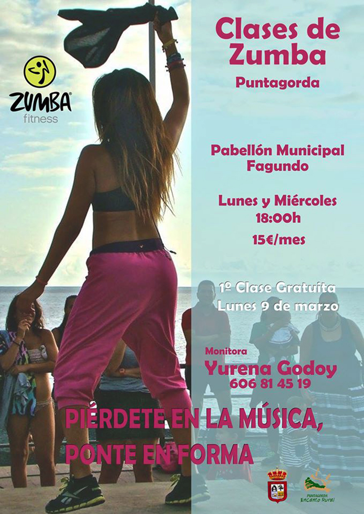 A partir del lunes 9 de marzo de 2015. Puntagorda. Clases de zumba en el Pabellón Fagundo de Puntagorda de la mano de Yurena Godoy. Los lunes y miércoles a partir de las 18:00 horas. La primera clas...