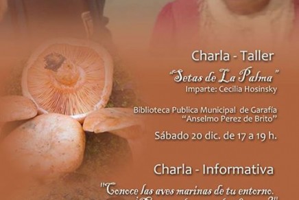 – Charla/Taller «Setas de La Palma» impartido por Cecilia Hosinsky este próximo sábado 20 de diciembre en La Biblioteca Municipal «Anselmo Pérez de Brito» en horario de 17:00 a 19:00 horas.