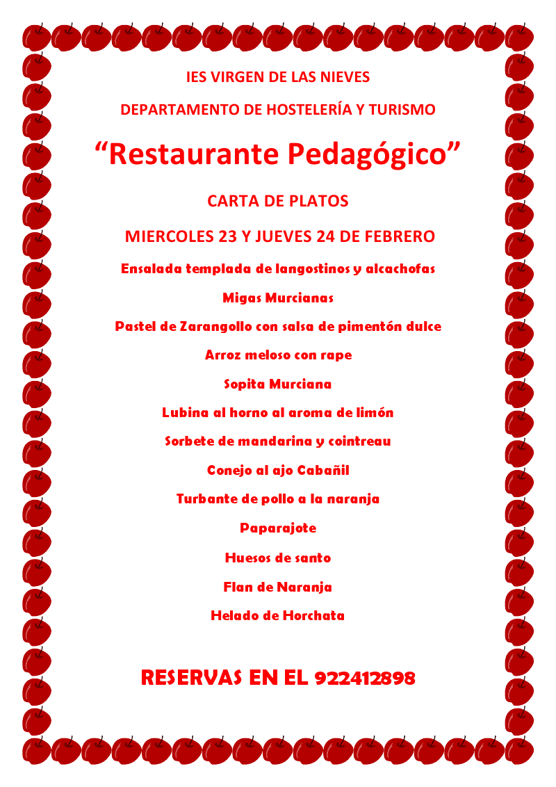 MENÚ RESTAURANTE PEDAGÓGICO (23 Y 24 DE FEBRERO 2011)