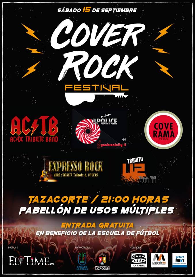 Sábado 15 de septiembre de 2018. A las 21:00 horas. Pabellón de Usos Múltiples. Tazacorte. Entrada libre. Un cocierto en beneficio de la Escuela de Fútbol El Cano, que durará 7 horas, con hom...