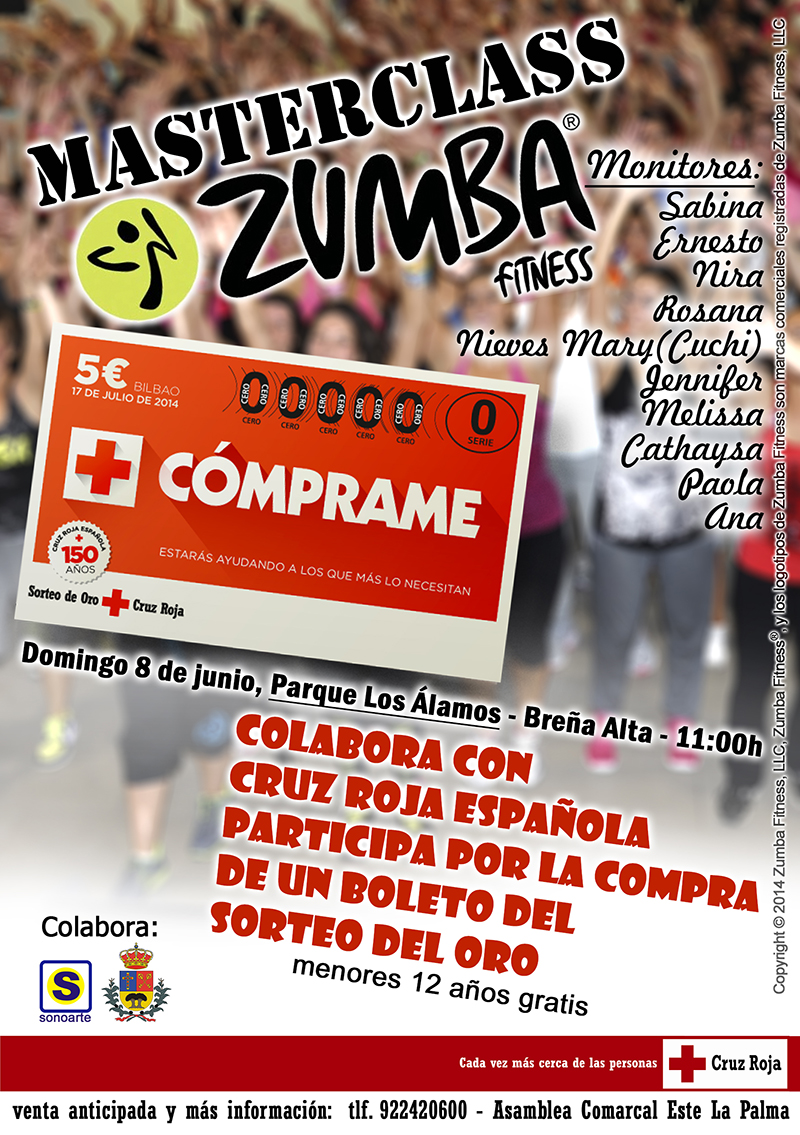 Domingo 8 de junio de 2014. A las 11:00 horas en el Parque Los Álamos. Breña Alta. Desde la Comarca Este de La Palma de Cruz Roja Española organizan una MASTERCLASS DE ZUMBA, donde harán presenci...