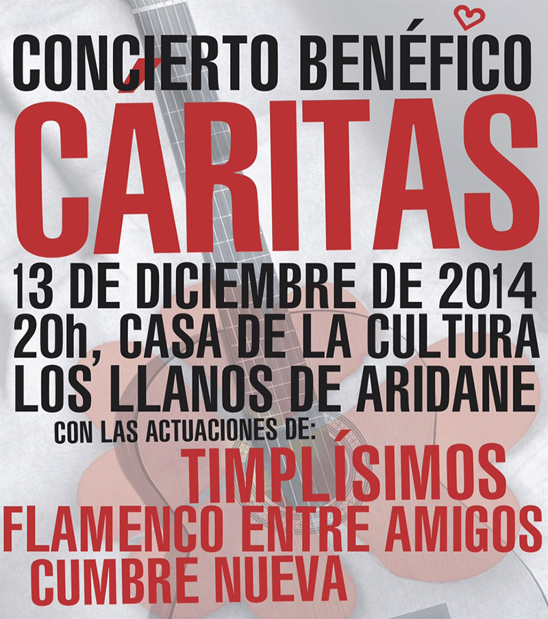 Sábado 13 de diciembre de 2014. A las 20:00 horas en la Casa de La Cultura de Los Llanos de Aridane. Con las actuaciones de Timplísimos Band, Flamenco entre amigos y la Agrupación Cumbre Nueva. Ent...