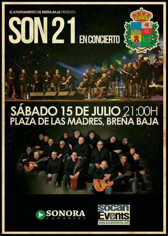 Sábado 15 de julio de 2017. A las 21: 00 horas. Plaza de Las Madres. San José. Breña Baja. El termino Son 21 quiere hacer referencia al número de componentes fundadores, quienes tras años de visi...