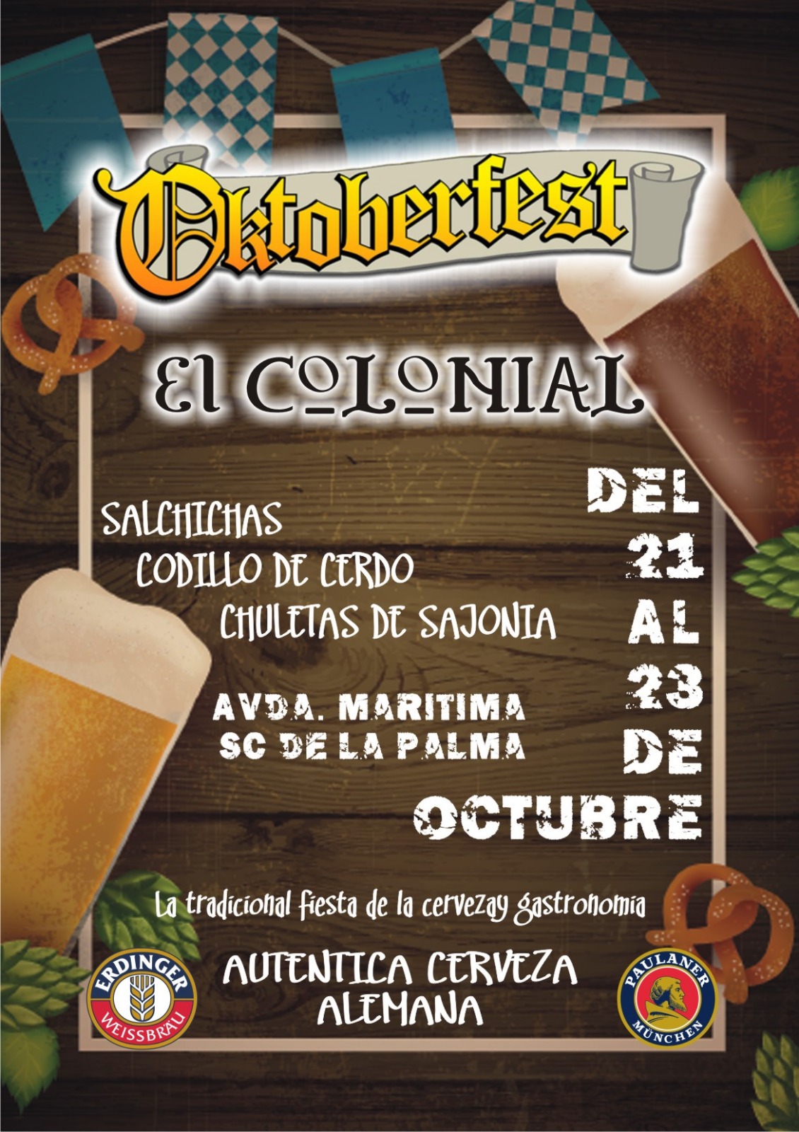 Del 21 al 23 de octubre. «El Colonial». Avda. Marítima 35. S/C de La Palma. La Cafetería – Cervecería «El Colonial« en Santa Cruz de La Palma celebra la tradicional fiesta alemana «Oktob...