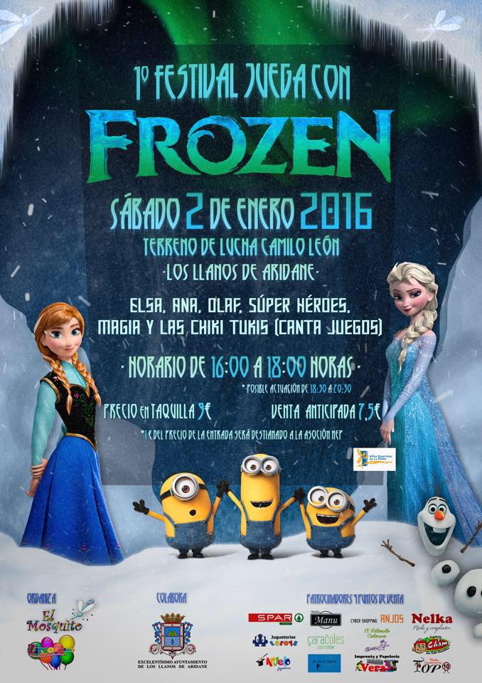 2 de enero de 2016. A las 16:00 horas. Terrero de Lucha Camilo León. Los Llanos de Aridane. Entradas en internet>> Festival juega con Frozen y sus amigos Elsa, Ana, Olaf, magia y las Chiki...