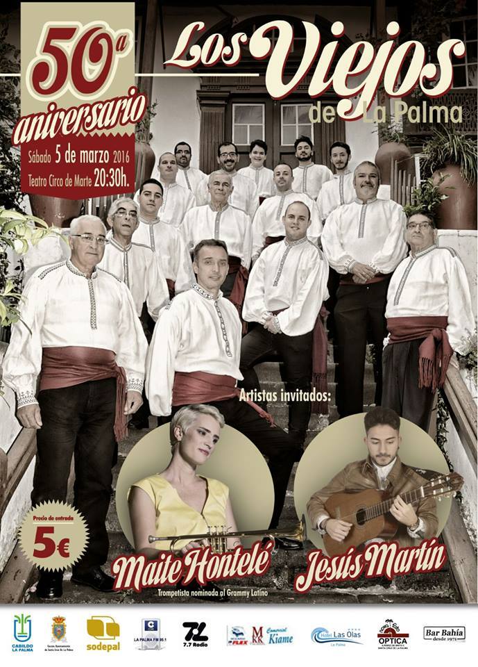 Sábado 5 de marzo de 2016. A las 20:30 horas. Teatro Circo de Marte de Santa Cruz de La Palma. Entradas 5 €. En la taquilla del teatro. Los Viejos de La Palma, celebrarán su 50 Aniversario con un...