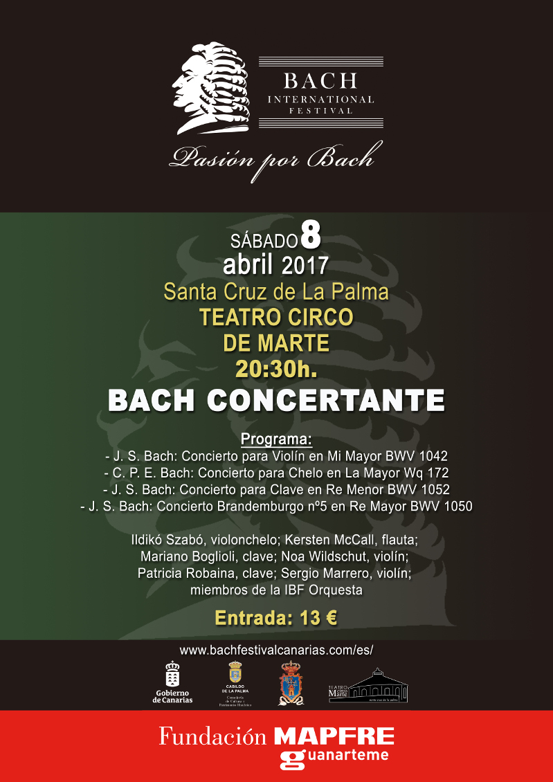 Sábado 8 de abril de 2017. 20:00 horas. Teatro Circo de Marte. Santa Cruz de La Palma. Entradas 13 €. Comprar>> El International Bach Festival de Canarias ofrece por primera vez un concierto ...